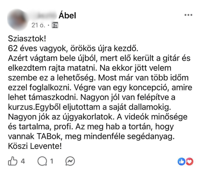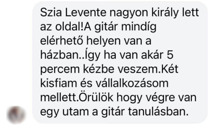 Az elmúlt több mint 14 évben kezdők százainak segítettem elindulni a gitározás útján az első hangoktól indulva egészen addig, hogy magabiztos, haladó szinten tudjanak játszani, vagy akár komolyabb szintre emeljék a tudásukat.
